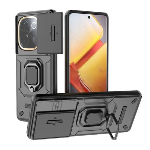 Funda Protectora de TPU + PC con Soporte para Vivo Iqoo Z9S Pro 5G, con Diseño Deslizante y Antigolpes (Negro)