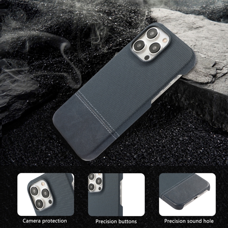 Funda de Teléfono a Prueba de Golpes de Pu con Costura de Tela para iPhone 16 (Azul Oscuro)