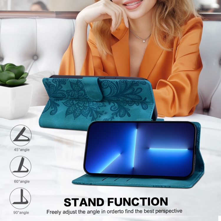 Funda de Teléfono con Hebilla Magnética y Encaje Floral En Relieve para Redmi 11A/12C (Verde)