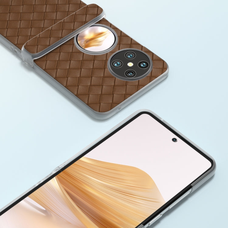 Funda de Teléfono Huawei Pocket 2 3 en 1 con Marco Translúcido y Textura Tejida (Marrón)
