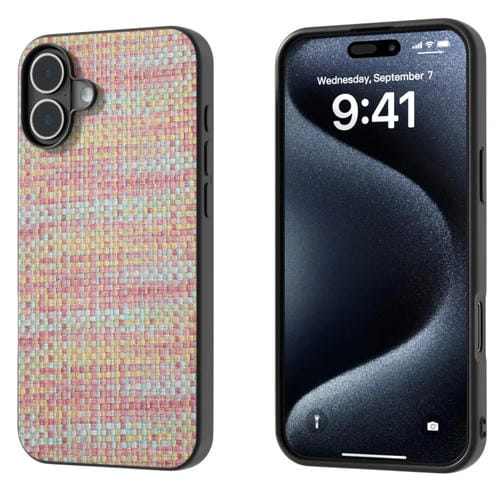 Funda de Teléfono Pu con Marco Negro y Enrejado para iPhone 16 Plus (Rosa)