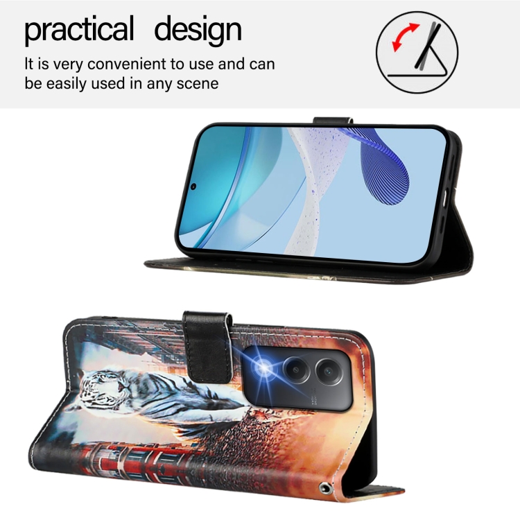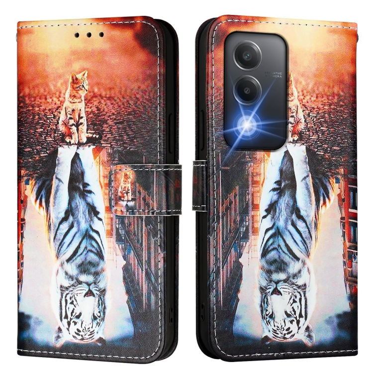 Funda de Teléfono de Cuero con Patrón de Dibujo de Colores de la India para Oppo A3 Pro 5G (Gatos y Tigres)