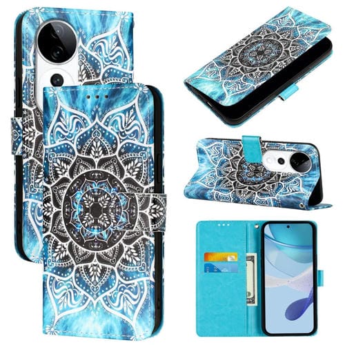 Funda de Teléfono de Cuero con Tejido Liso y Patrón de Dibujo de Colores para Vivo S19 Pro (Mandala Submarino)