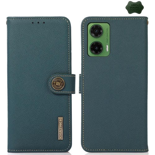 Funda de Cuero Genuino Khazneh Custer para Motorola Moto G35 con Protección RFID (Verde)