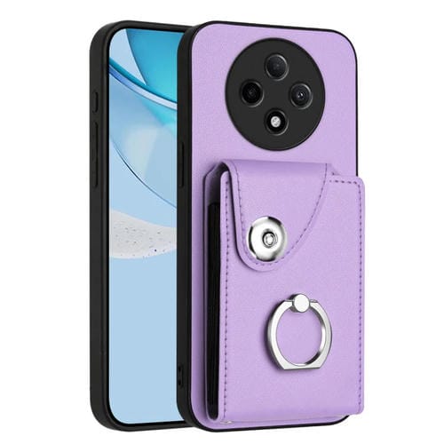 Funda de Teléfono de Pu con TaRJetero y Anillo para Oppo A3 Pro 5G (Morado)
