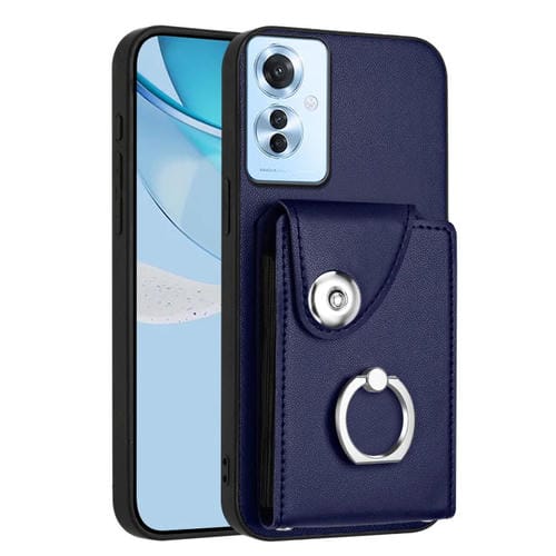 Funda de Teléfono de Pu con TaRJetero y Anillo para Oppo F25 Pro 5G (Azul)