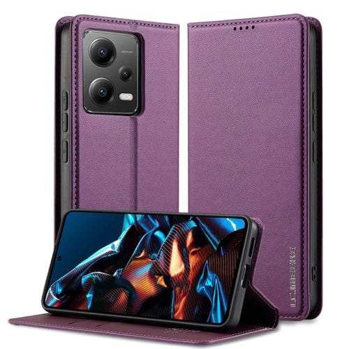 Funda de Teléfono de Pu con Textura Fina Esmerilada para Xiaomi Poco X5 Lc.Imeeke L1 Series (Morado)