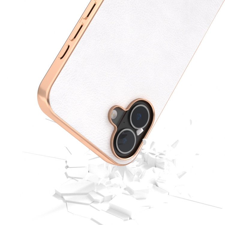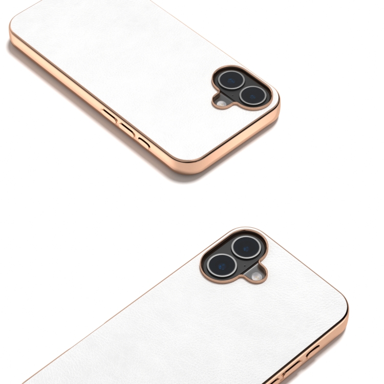 Funda de teléfono PU con textura Lichi dos colores nano galvanoplastia iPhone 16 (Blanca)