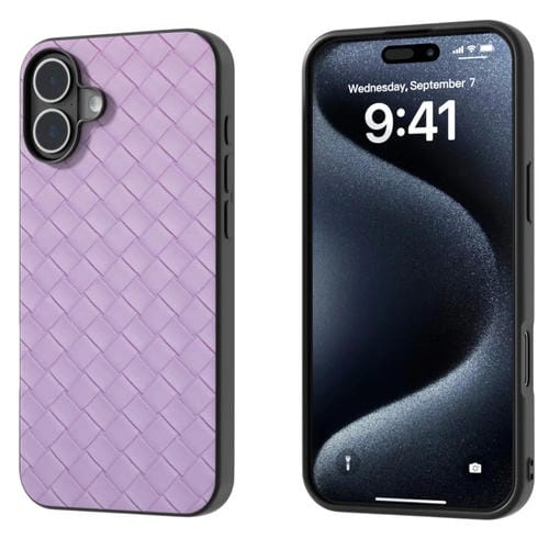 Funda de teléfono PU con textura tejida y marco negro para iPhone 16 Plus (Morado)