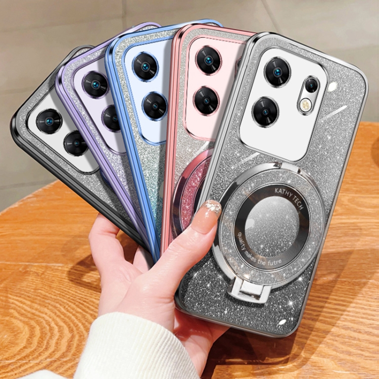 Funda de TPU con Soporte Redondo y Purpurina para Infinix Zero 30 4G (Rosa)