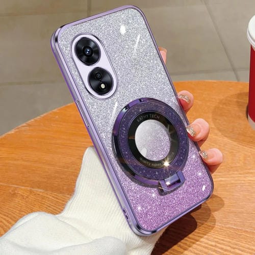 Funda de Teléfono de TPU con Soporte Redondo y Purpurina Degradada para Oppo A97 5G (Morado)