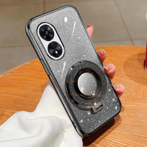 Funda de Teléfono de TPU con Soporte Redondo y Purpurina Degradada para Oppo A97 5G (Negra)