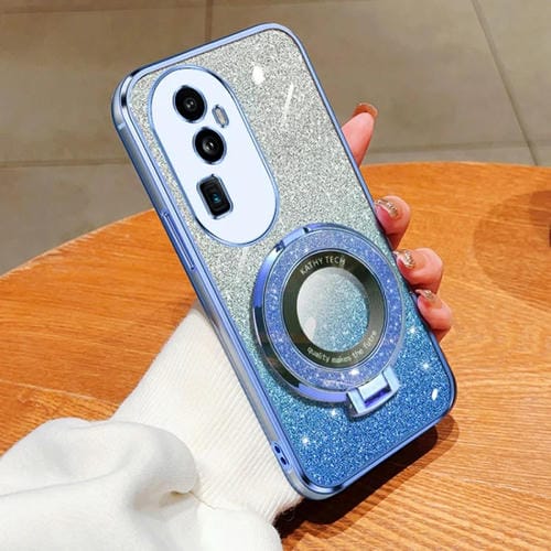 Funda de Teléfono de TPU con Soporte Redondo y Purpurina Degradada para Oppo Reno10 Pro+ (Azul Sierra)