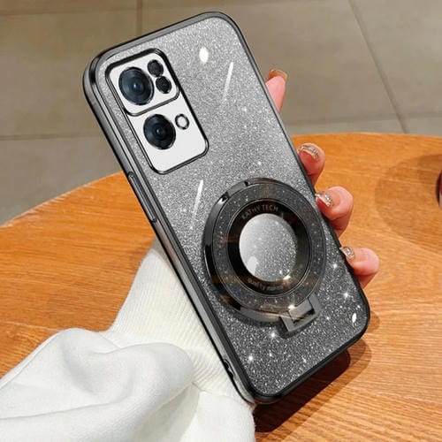 Funda de Teléfono de TPU con Soporte Redondo y Purpurina Degradada para Oppo Reno7 Pro 5G (Negra)