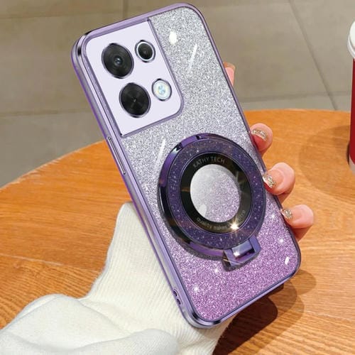 Funda de Teléfono de TPU con Soporte Redondo y Purpurina Degradada para Oppo Reno8 (Morado)