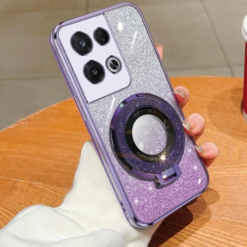 Funda de Teléfono de TPU con Soporte Redondo y Purpurina Degradada para Oppo Reno8 Pro (Morado)