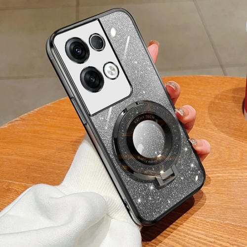 Funda de Teléfono de TPU con Soporte Redondo y Purpurina Degradada para Oppo Reno8 Pro+ (Negra)