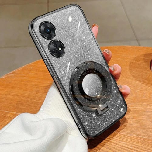 Funda de Teléfono de TPU con Soporte Redondo y Purpurina Degradada para Oppo Reno8 T 4G (Negra)