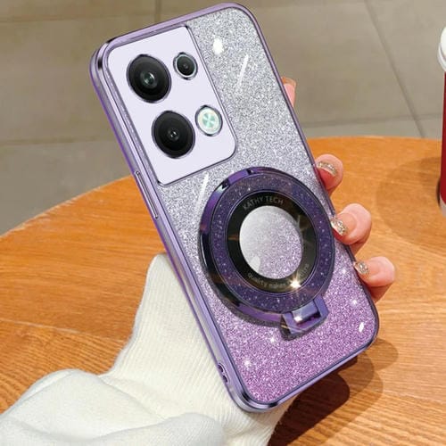 Funda de Teléfono de TPU con Soporte Redondo y Purpurina Degradada para Oppo Reno9 Pro+ (Morado)