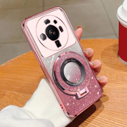 Funda de Teléfono de TPU con Soporte Redondo y Purpurina Degradada para Xiaomi 12S Ultra (Rosa)