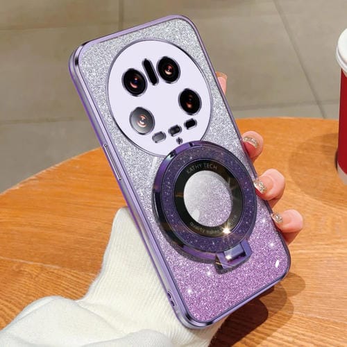 Funda De Teléfono De Tpu Con Soporte Redondo Y Purpurina Degradada Para Xiaomi 14 Ultra (Morado)
