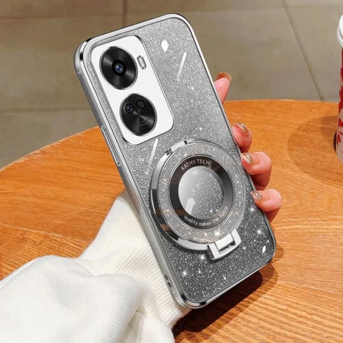 Funda de TPU con Soporte Redondo y Purpurina Degradada para Huawei Nova 11 Se (Plateada)