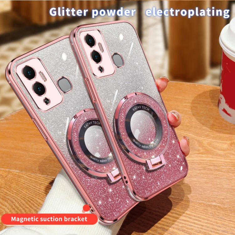 Funda TPU con Soporte Redondo y Purpurina Degradada para Infinix Hot 12 Play (Plateada)