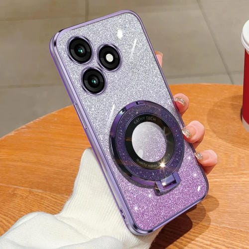 Funda de TPU con Soporte Redondo y Purpurina Plateada para Itel A70 (Morado)