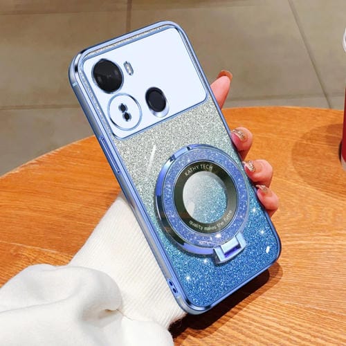 Funda TPU con Soporte Redondo y Purpurina Degradada para Itel S23 (Azul Sierra)