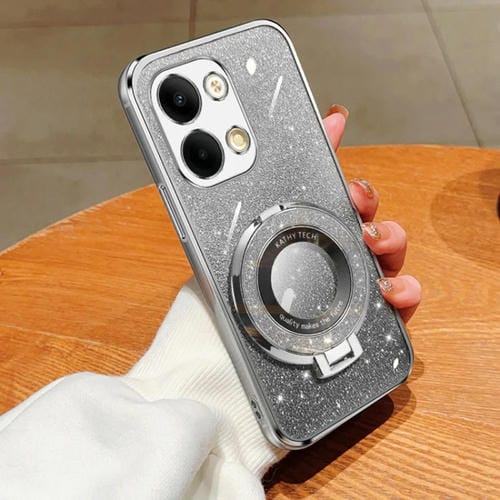 Funda de Teléfono de TPU con Soporte Redondo y Purpurina Degradada Plateada para Oppo Reno9 (Plateada)