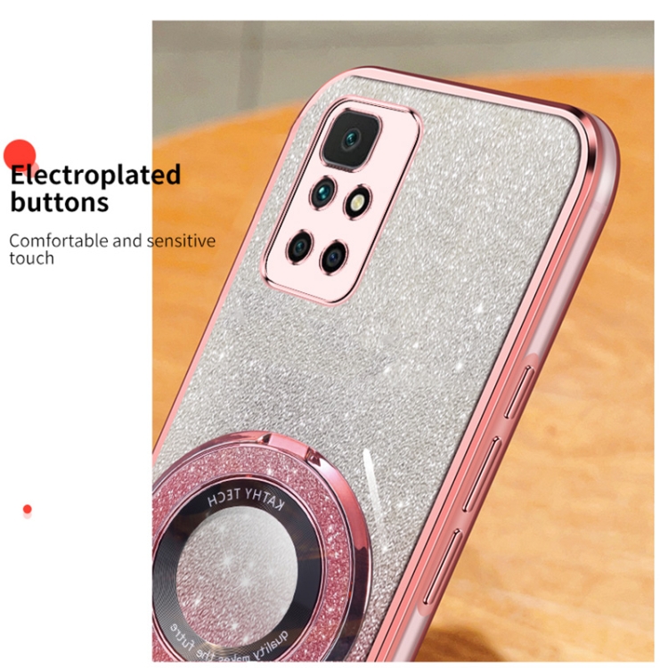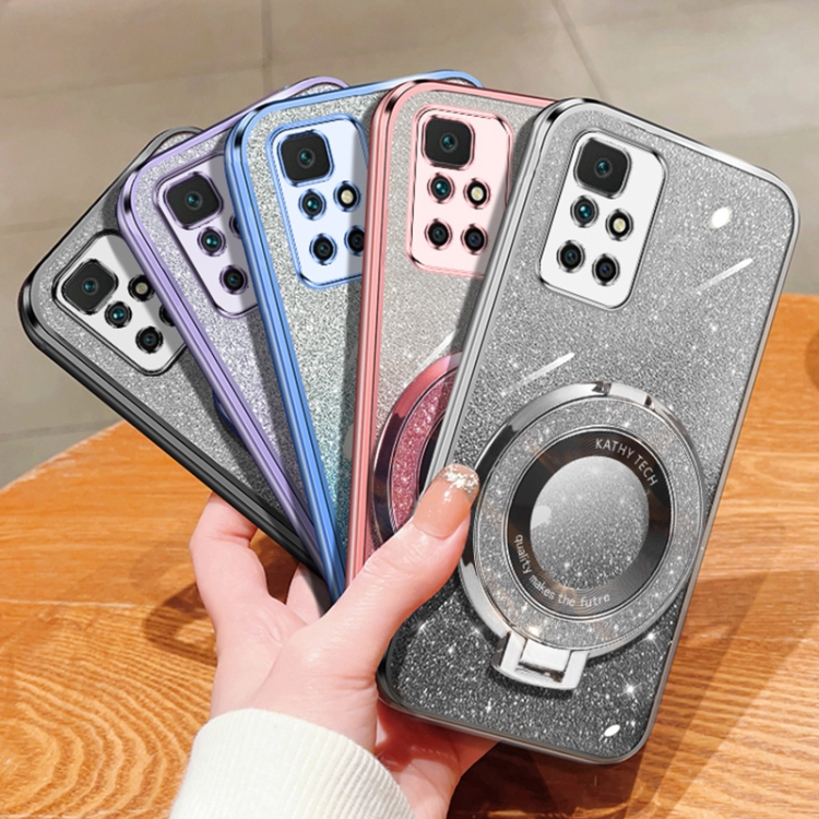 Funda de Teléfono de TPU con Soporte Redondo y Purpurina Degradada Plateada para Redmi 10 (Morado)
