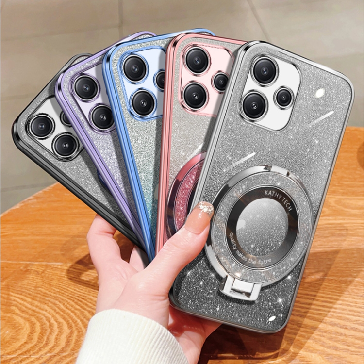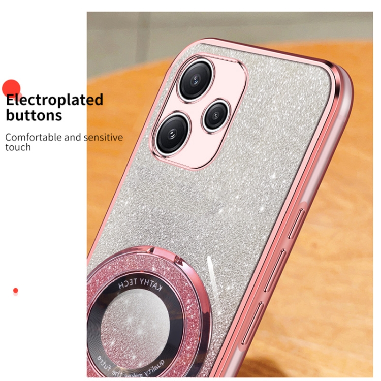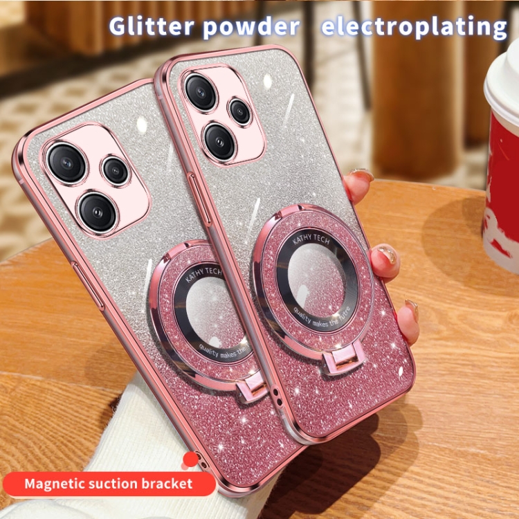 Funda de Teléfono de TPU con Soporte Redondo y Purpurina Degradada Plateada para Redmi 12 5G (Rosa)