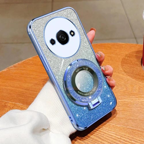 Funda de Teléfono de TPU con Soporte Redondo y Purpurina Degradada Plateada para Redmi A3 (Azul Sierra)