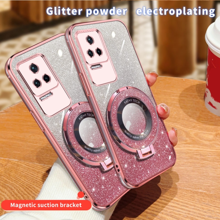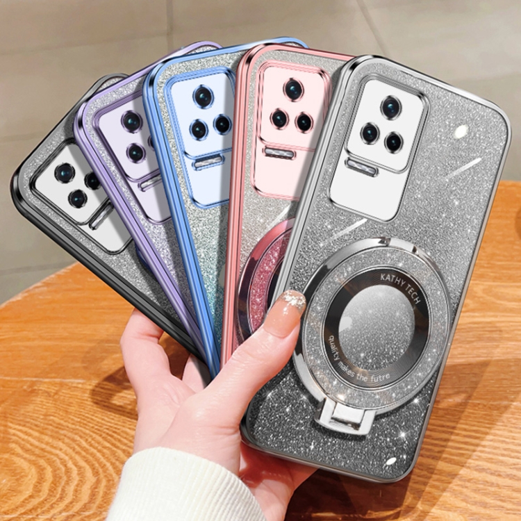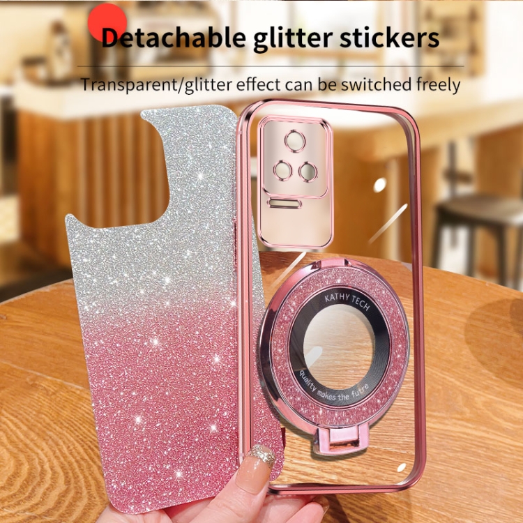 Funda de Teléfono de TPU con Soporte Redondo y Purpurina Degradada Plateada para Redmi K50/K50 Pro (Azul Sierra)