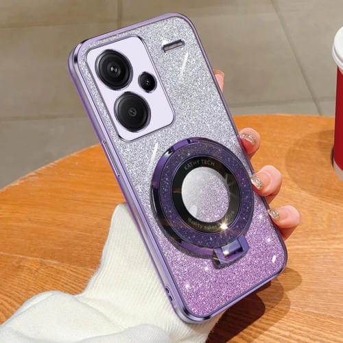 Funda de Teléfono de TPU con Soporte Redondo y Purpurina Degradada Plateada para Redmi Note 13 Pro+ (Morado)