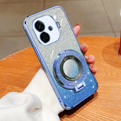 Funda de Teléfono de TPU con Soporte Redondo y Purpurina Degradada Plateada para Vivo Iqoo Neo Z9 (Azul Sierra)