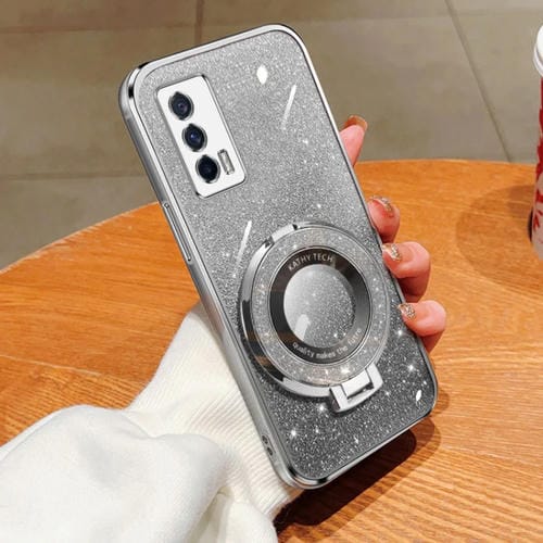 Funda de Teléfono de TPU con Soporte Redondo y Purpurina Degradada Plateada para Vivo Iqoo Neo5 (Plateada)