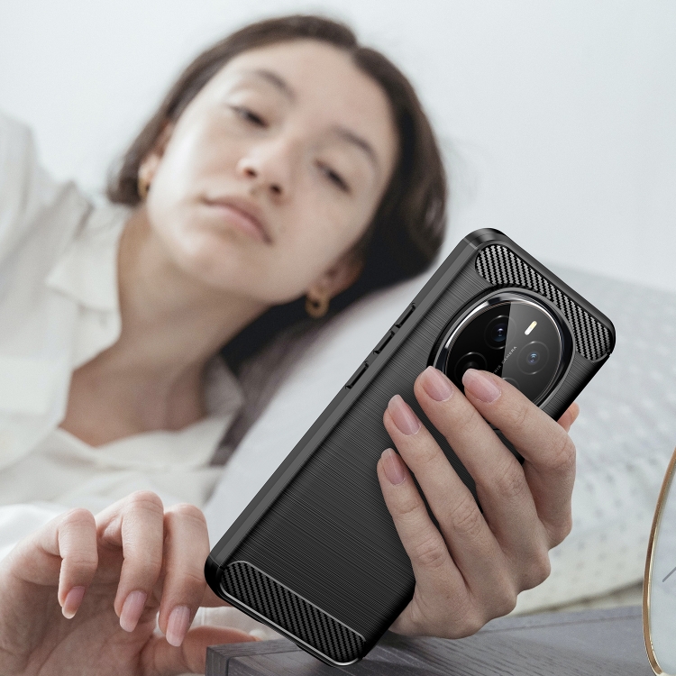 Funda de Teléfono TPU con Textura Cepillada Fibra de Carbono para Honor Magic7 (Negra)