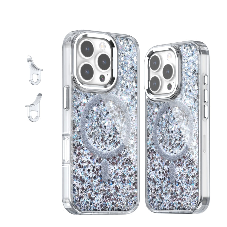 Funda de Teléfono TPU Magnética Magsafe con Purpurina Epoxi para iPhone 16 Pro (Blanca)