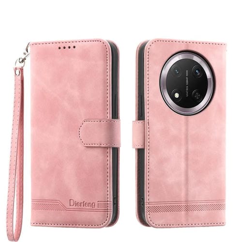 Funda híbrida TPU y cuero sintético Dierfeng Dream Line para Honor X9C Global y Magic7 Lite (Rosa)