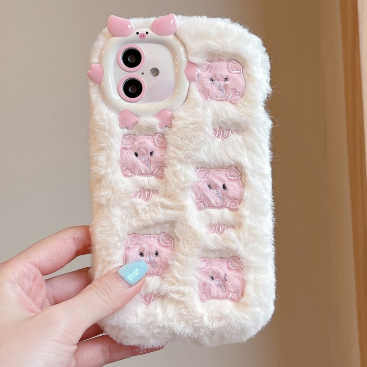 Funda TPU iPhone 16 Bordado Felpa Cerdo Rosa Beige
