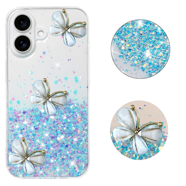 Funda TPU iPhone 16 Diseño Mariposa Brillo Cielo Estrellado Luminoso (Azul)
