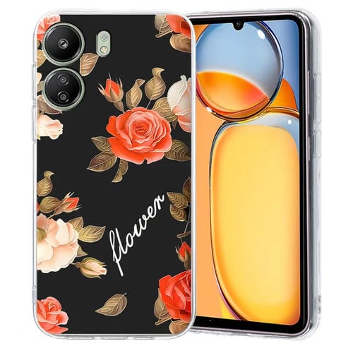 Funda de TPU con Patrón de Pintura Colorida para Redmi 13C 4G (Flores En Negro)
