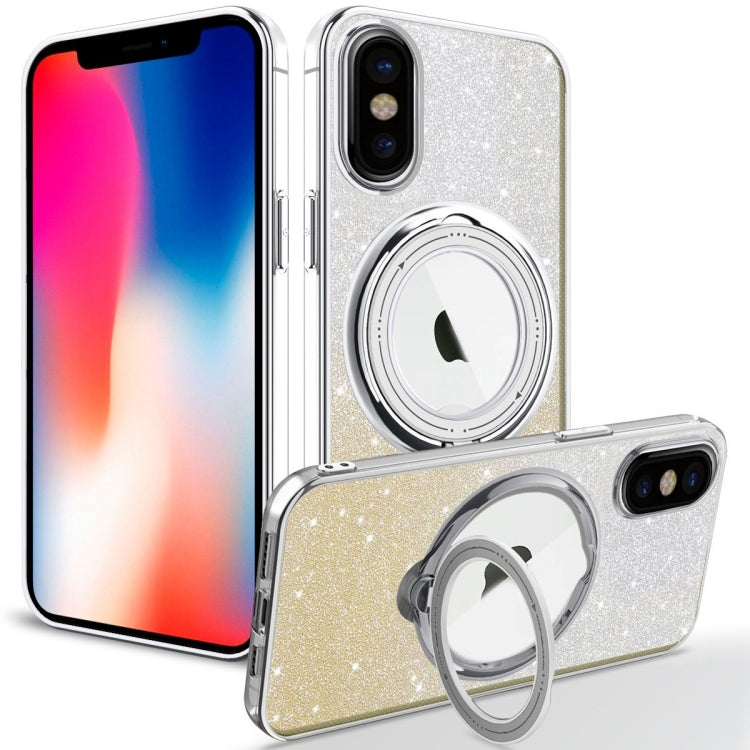 Funda TPU con Purpurina Degradada y Soporte Giratorio Magsafe para iPhone X/Xs (Dorada)