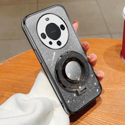 - 1x Funda TPU con Soporte redondo y purpurina degradada para Huawei Mate 60 Pro/60 Pro+ (Negra)