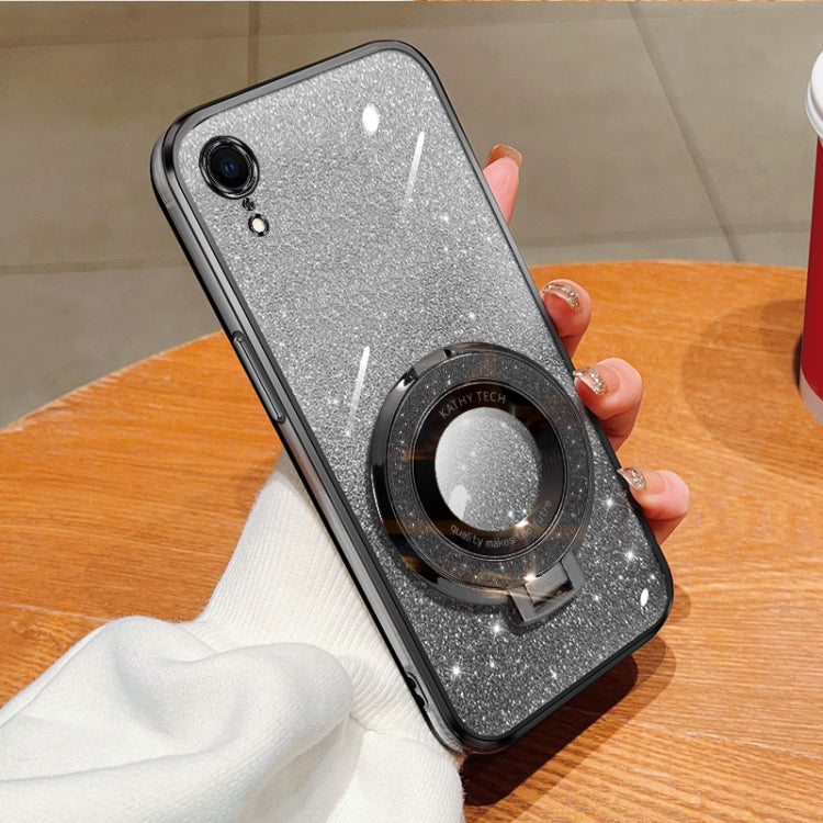 Funda TPU con Soporte Redondo y Purpurina Degradada para iPhone Xr (Negra)