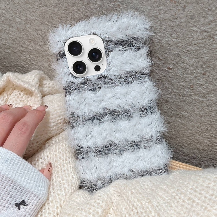 Funda TPU Felpa Tejido a Rayas para iPhone 16 Pro Max (Gris)