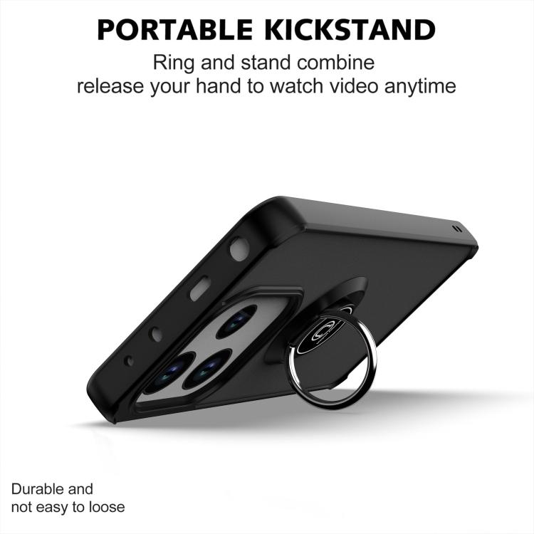 Funda de TPU + PC con anillo para Redmi Note 14 4G (163,25 mm) Serie Q Shadow 1 (Negro + Negro)