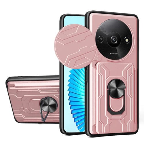 Funda de TPU+PC con Ranura para Tarjetas y Cierre Deslizante para Xiaomi Redmi A3 (Oro Rosa)