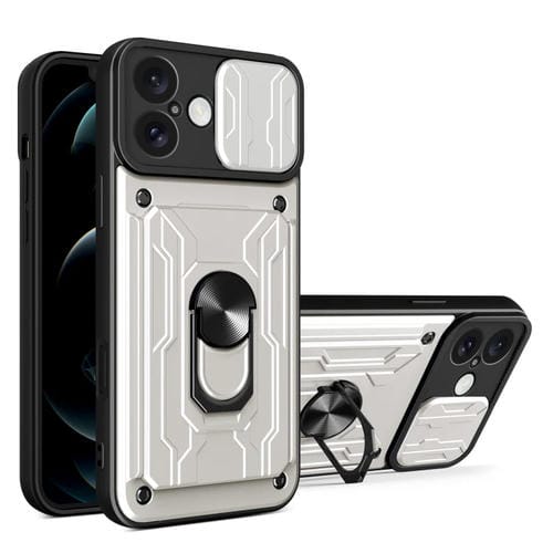Funda TPU+PC Deslizante con Ranura para Tarjetas para iPhone 16 Plus (Blanca)